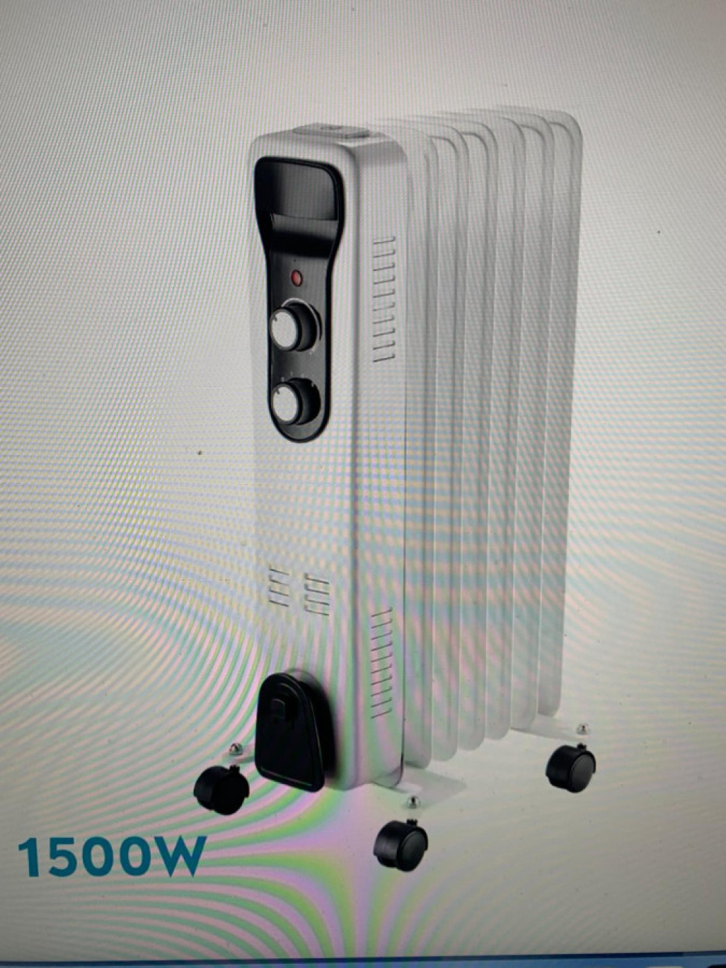 Potencia Máxima:1500 WSistema de protección antivuelco:Sistema de protección antivuelcoTermostato Regulable:Termóstato RegulablePiloto Luminoso:Piloto LuminosoCon recogecable:Con recogecableFijación mural y portátil:PortátilAsa de transporte:Asa de transporteNiveles de potencia:600W, 900W Y 1500WProtección contra sobrecalentamiento:Protección contra sobrecalentamientoElementos:7Emisor térmico:Emisor térmico de aceite